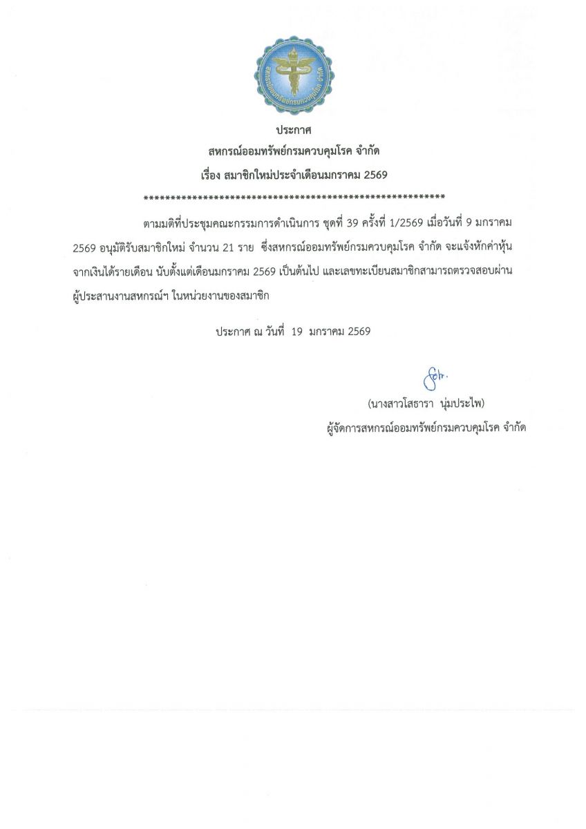 สมาชิกใหม่ประจำเดือนมกราคม 2569