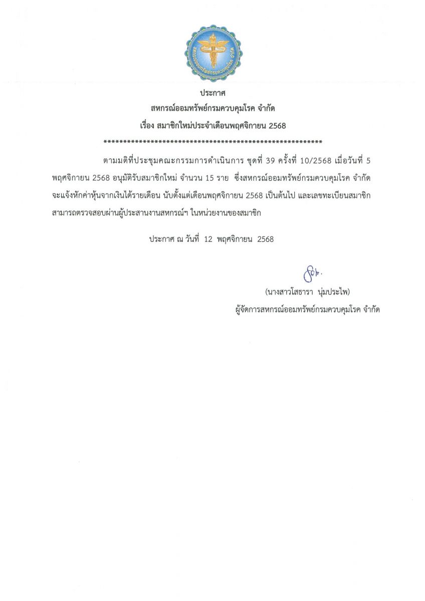 สมาชิกใหม่ประจำเดือนพฤศจิกายน 2568