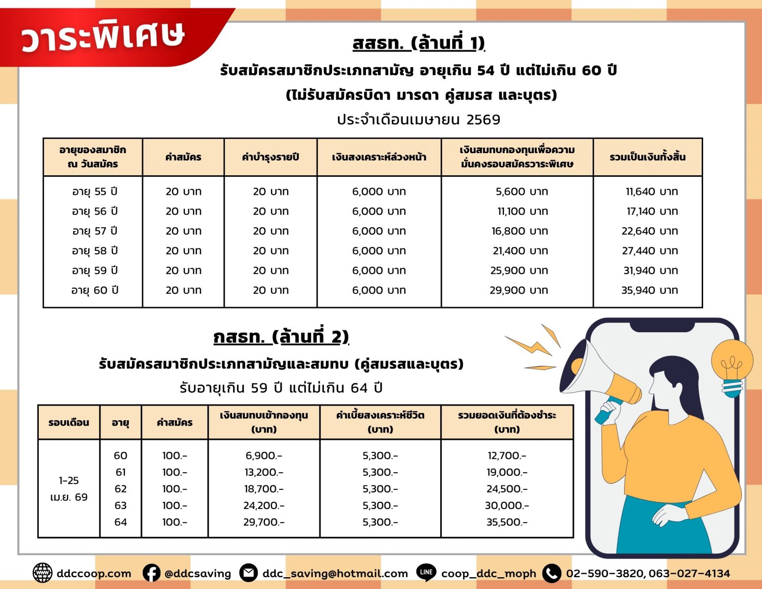 เปิดรับสมัครสมาชิก สสธท. (ล้านที่ 1) , กสธท. (ล้านที่ 2-5) , สส.ชสอ. (6 แสน) ,สส.สท. รอบเดือนเมษายน 2569 และวาระพิเศษ
